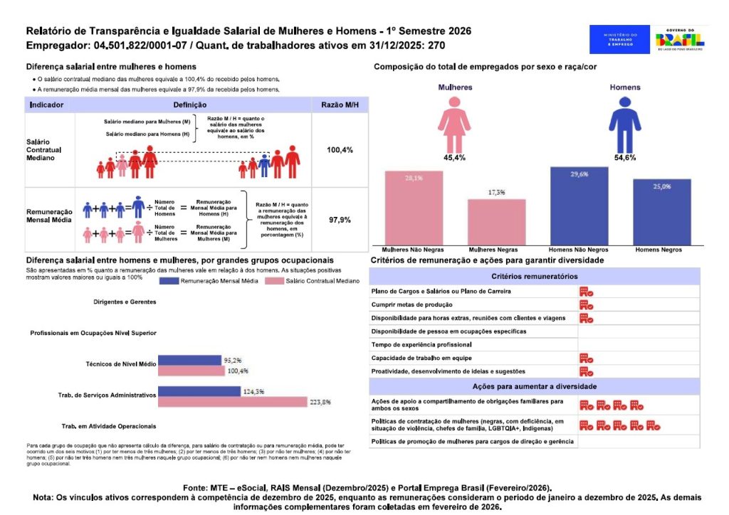 Em cumprimento à Lei nº 14.611/23 e ao Decreto nº 11.795/23, a Angel Lira dá publicidade ao relatório de transparência salarial. O arquivo completo está disponível na imagem abaixo.